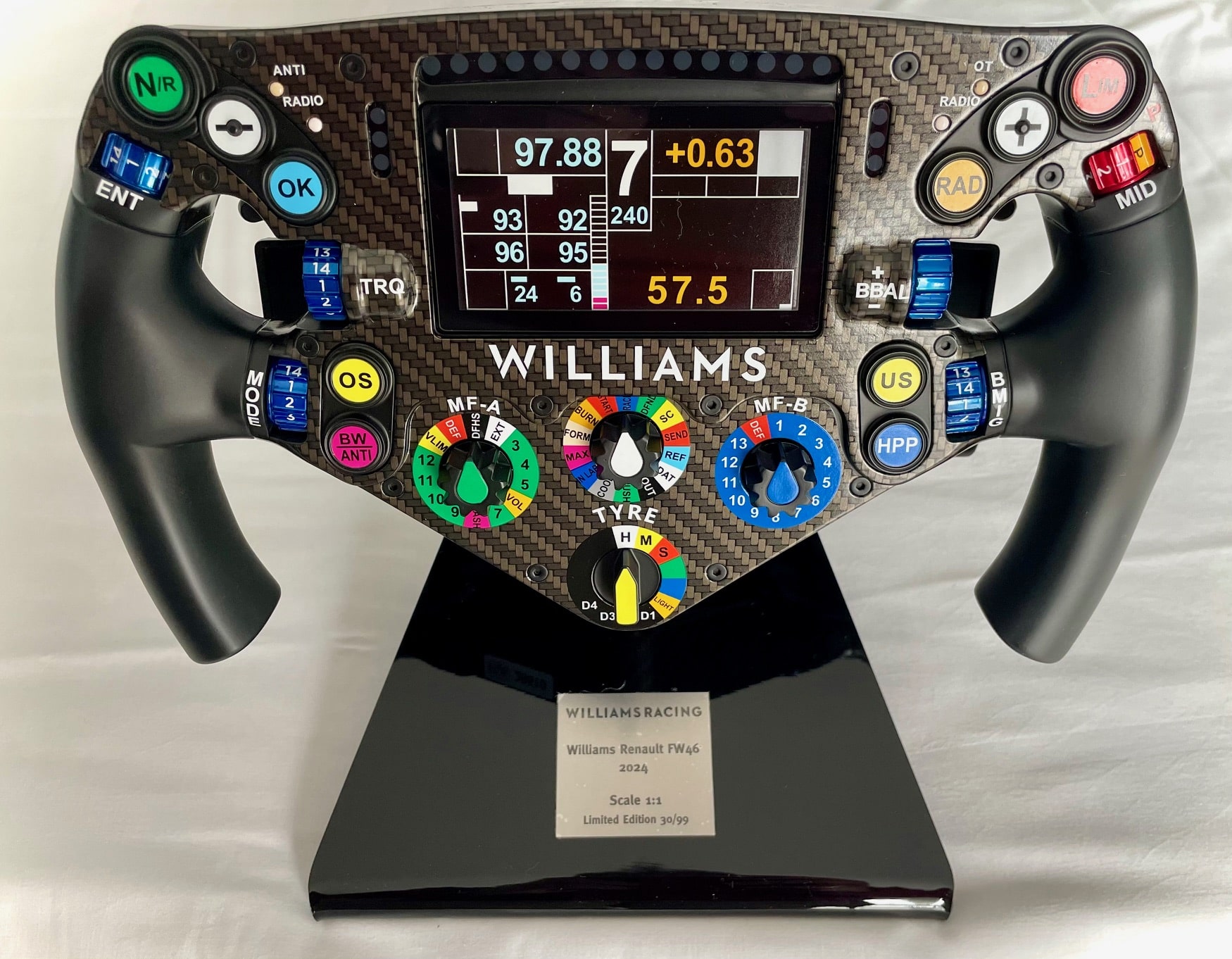 We have a great array of new items this week including a superb full scale licensed replica of the 2024 Williams FW24 steering wheel used by Albon and Colapinto. This was the first Williams F1  steering wheel to feature a built in display and the first full scale F1 replica steering wheel produced by Minichamps. It is one of only 99 produced worldwide that were sold out immediately, with absolutely superb and accurate detailing and display stand. We do not expect this to be around for long.
