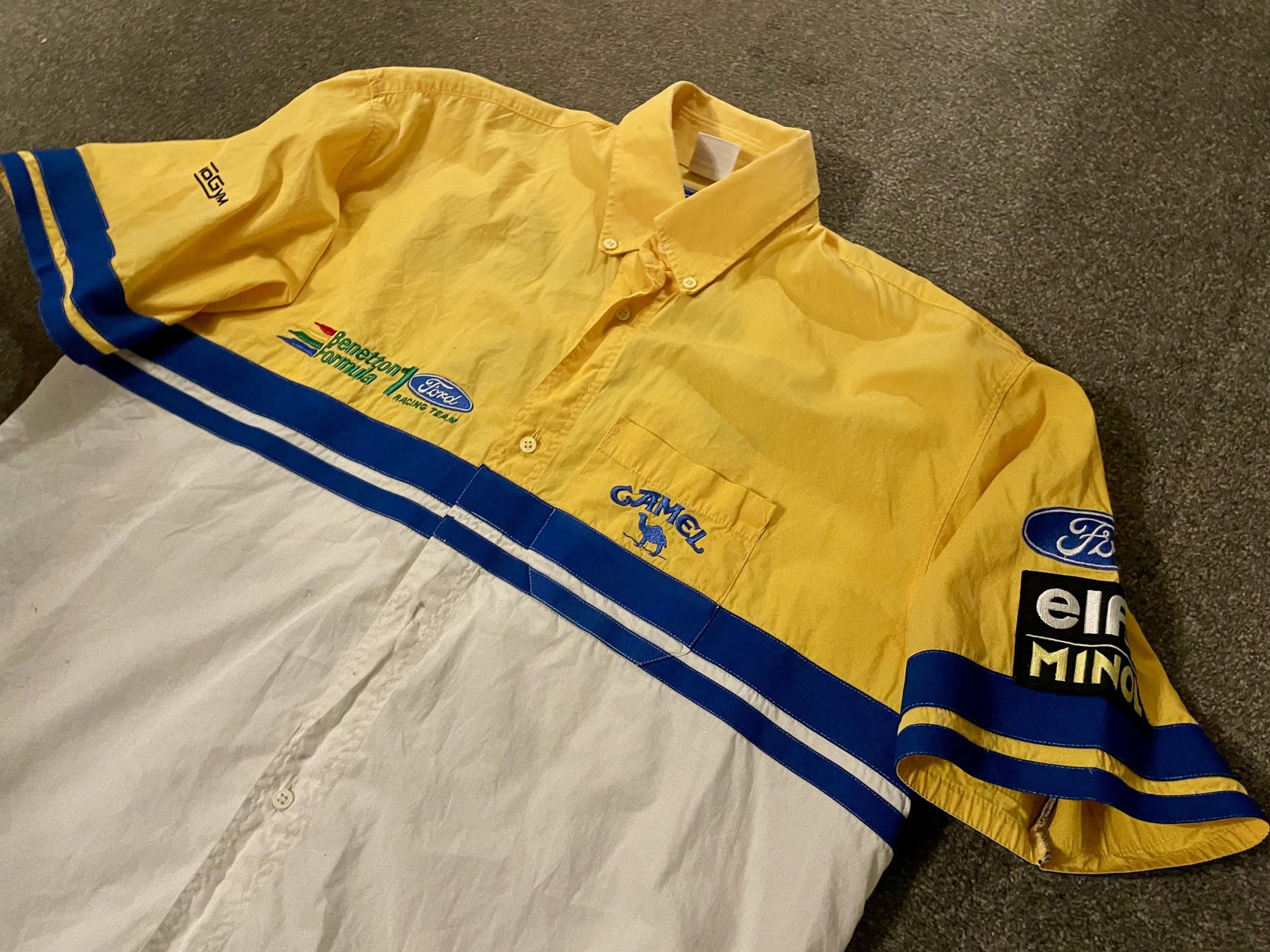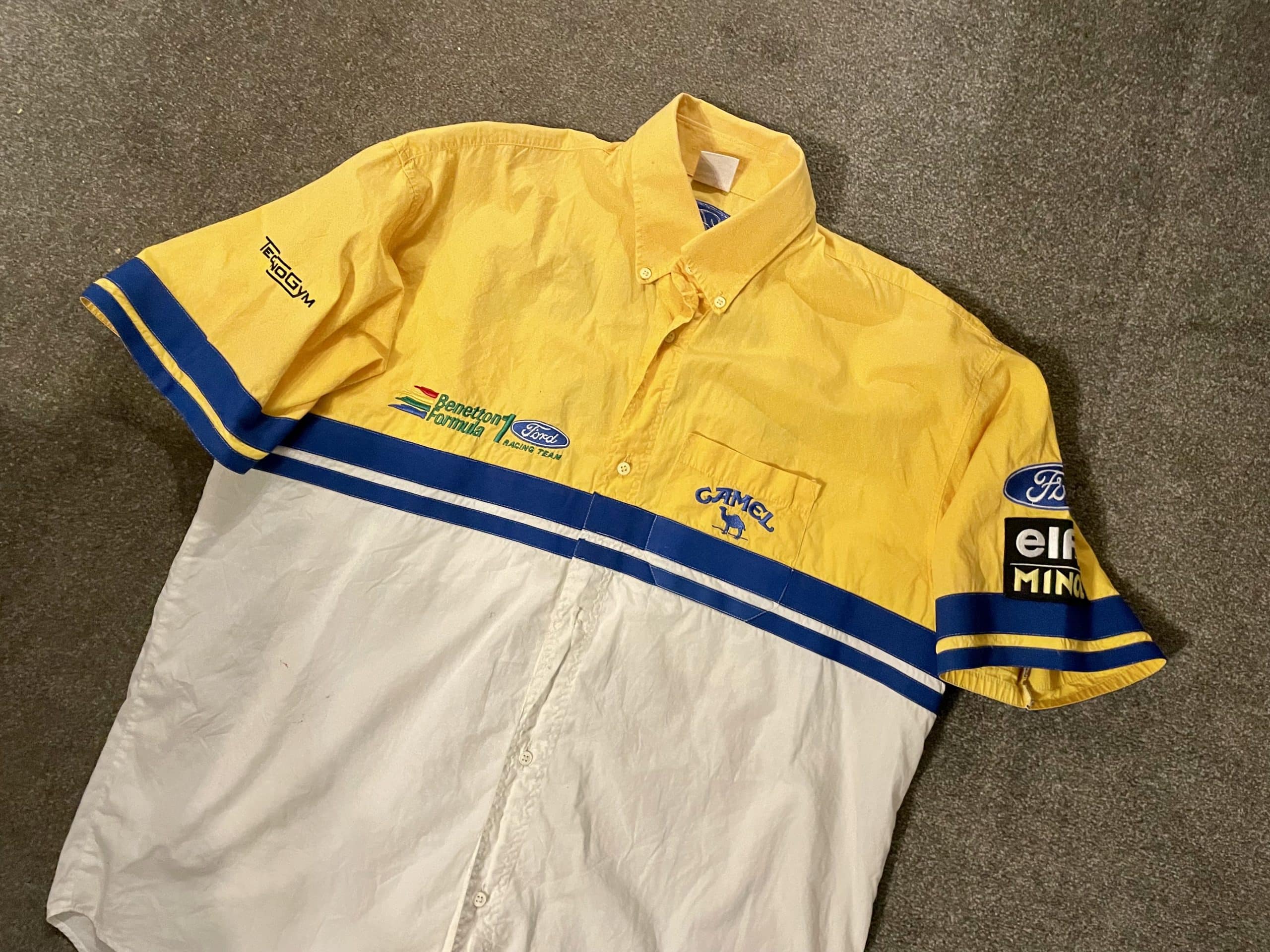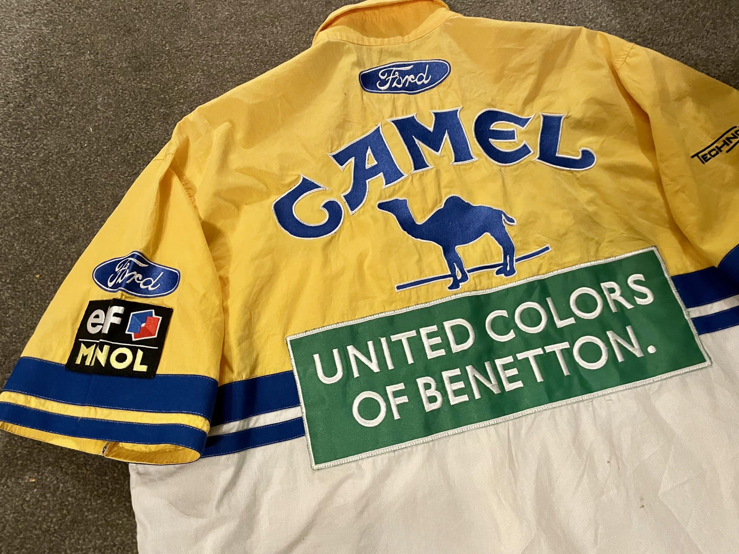 We are delighted to offer this Benetton Ford pit crew shirt from 1993 with full Camel tobacco logos.