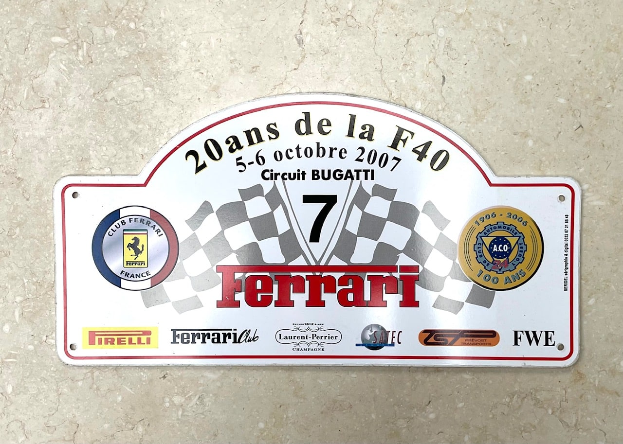 Ex Jabouille ‘rally’ plate from the 20th ann. Ferrari F40 event held at LeMans 2007