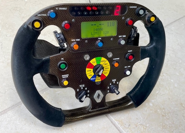 This wonderful steering wheel from the title winning car comes in its custom flight case with superb provenance, direct from the collection of a former Enstone senior.