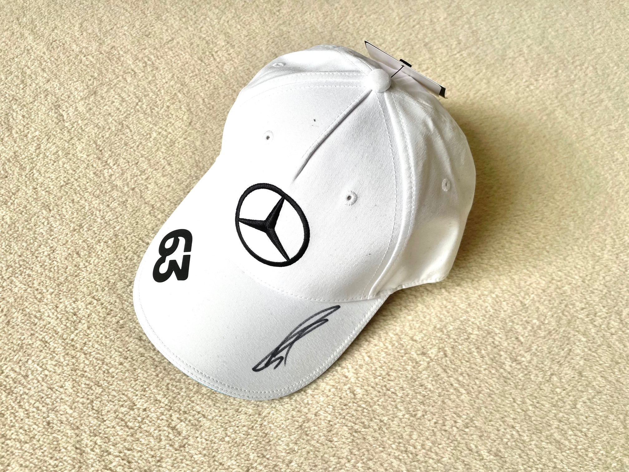 This white George Russell ’63’ cap comes from the collection of a F1 journalist.