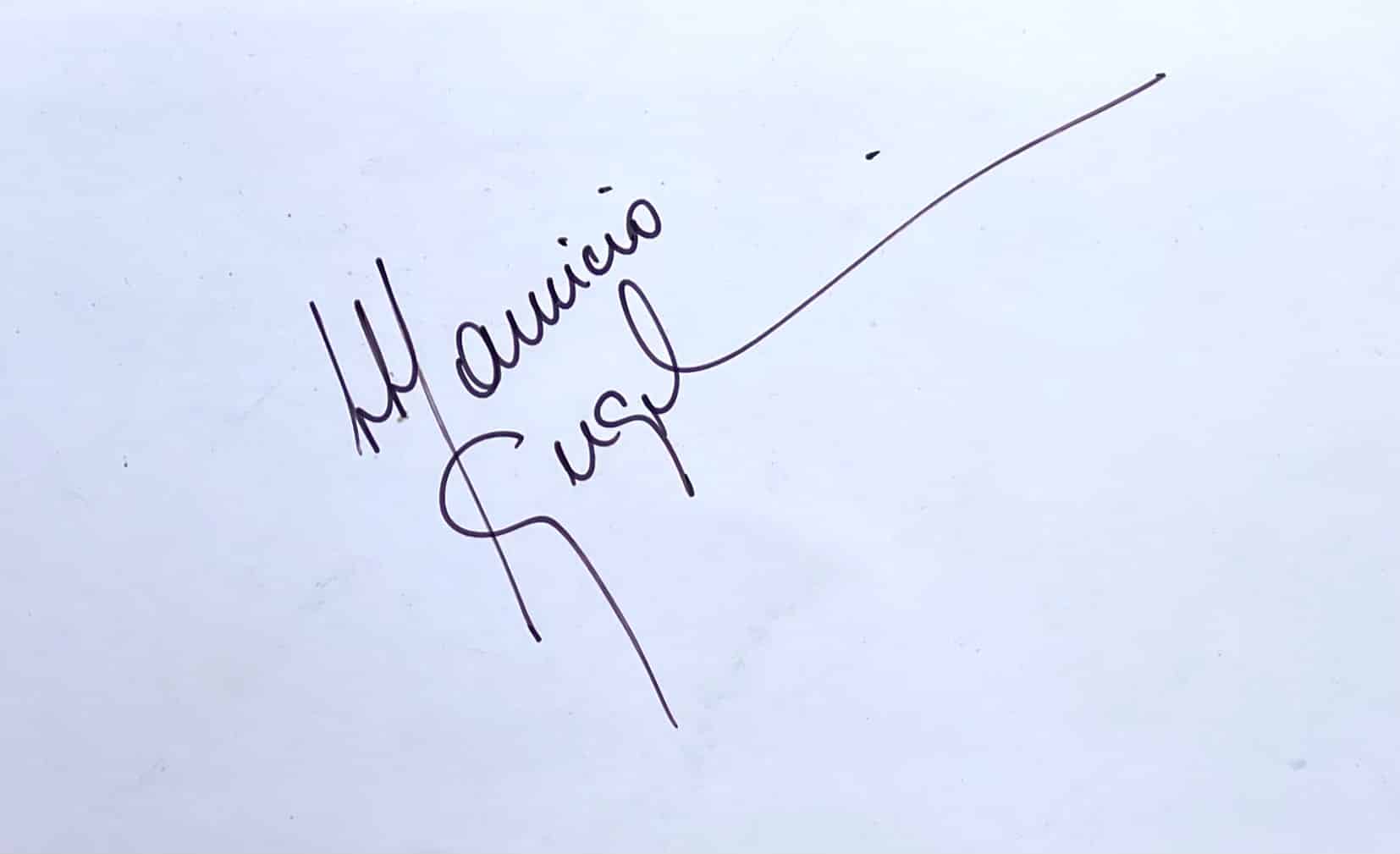 This example has been signed by Mauricio and Stefano and is framed in black and Perspex glazed ready to hang. It is A2 size.