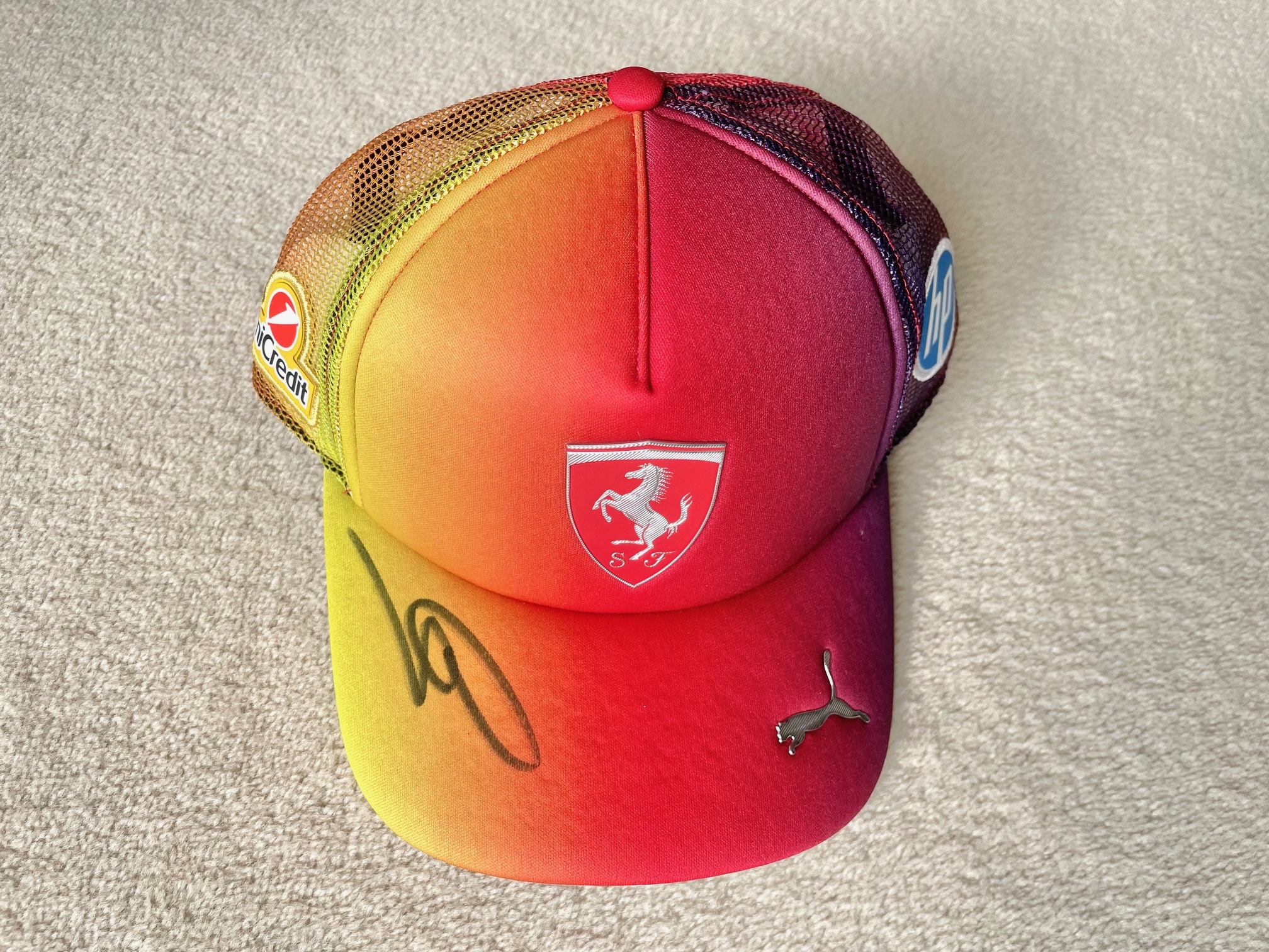 The peak has been hand signed by the 7x champion.
