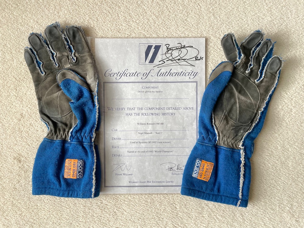 Nigel Mansell 1992 World Championship winning hand signed race used Williams F1 gloves