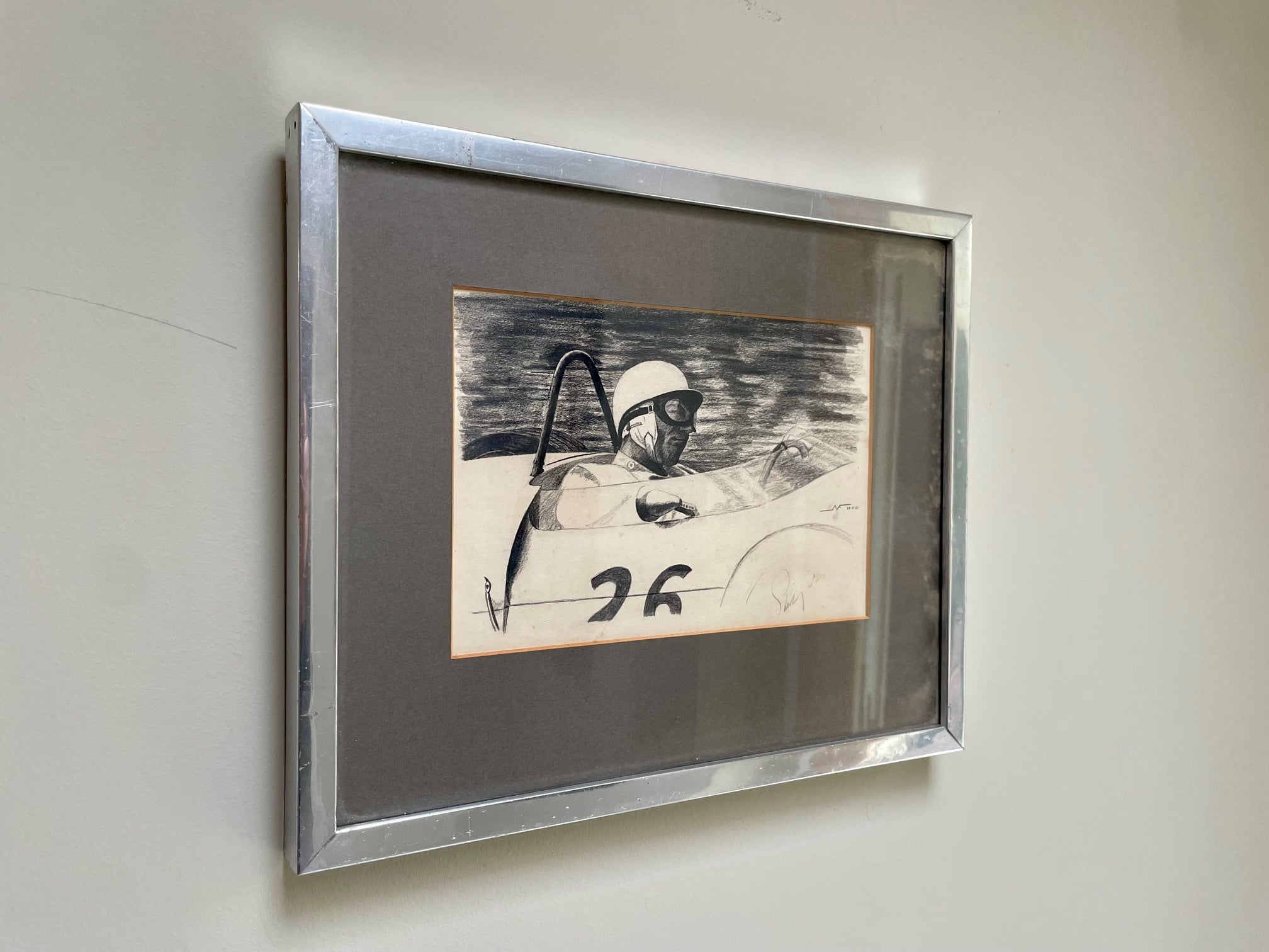The original drawing was hand signed in full by Stirling in June 1961. Nick recalls ‘I opportunistically drove my early Mini Cooper S to Rob Walker’s London Road workshop at Pippbrook Garage in Dorking. I saw that Stirling’s own Mini Cooper was parked outside and patiently waited for Stirling and was rewarded with a hand written / signed note from Stirling to me, as well as Stirling’s full signature to the drawing.’
