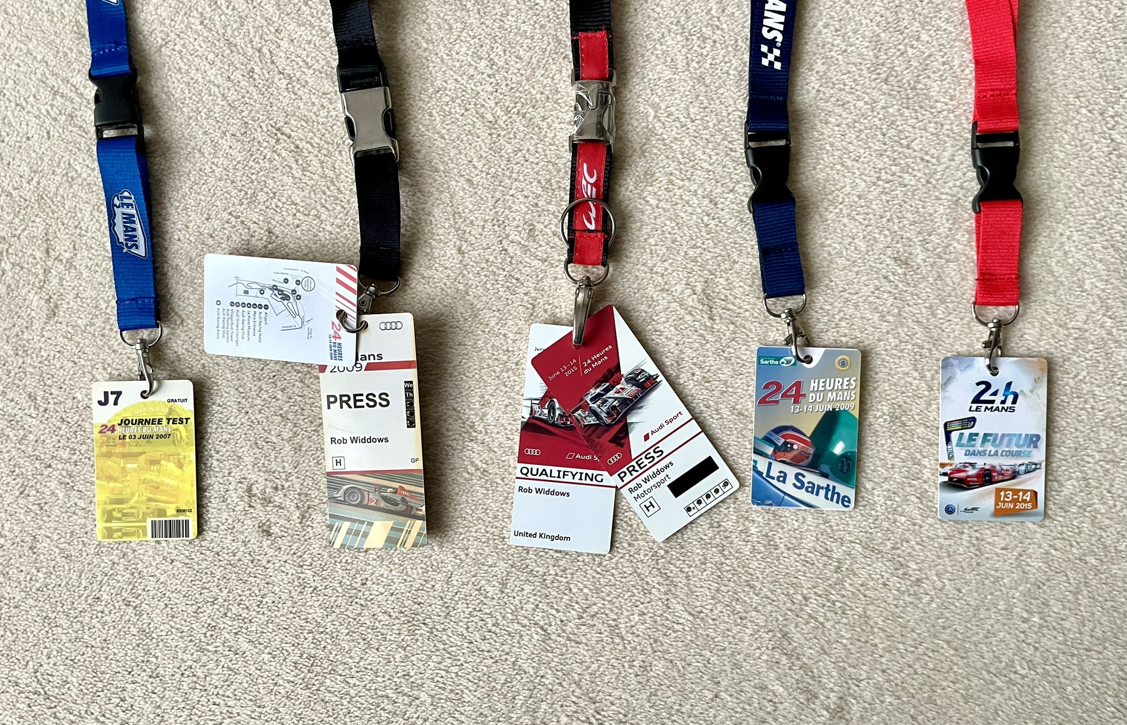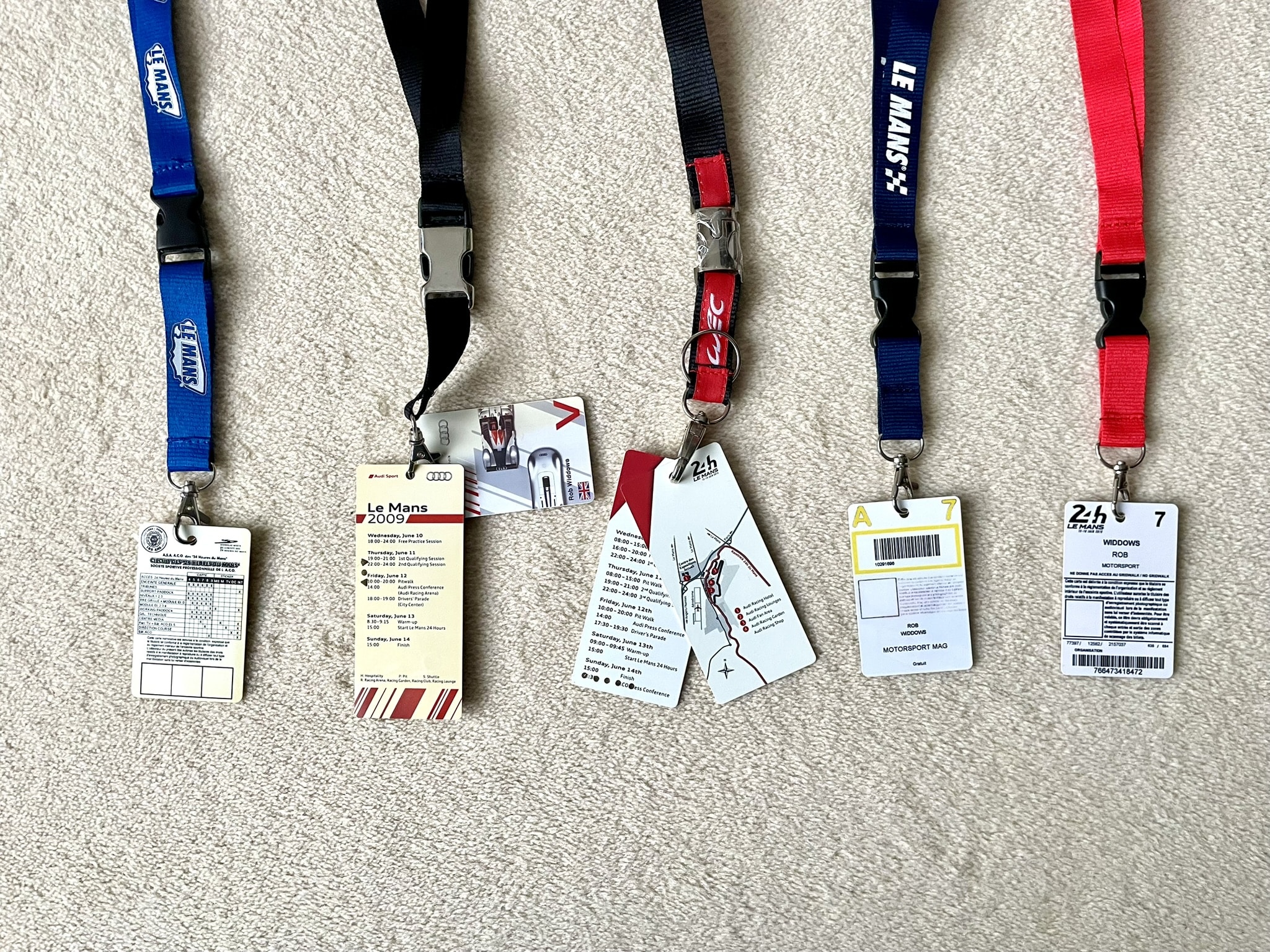 This set consists of Rob’s passes for Le Mans in 2015 x3(Audi), 2007 (Test), 2009 (x3).